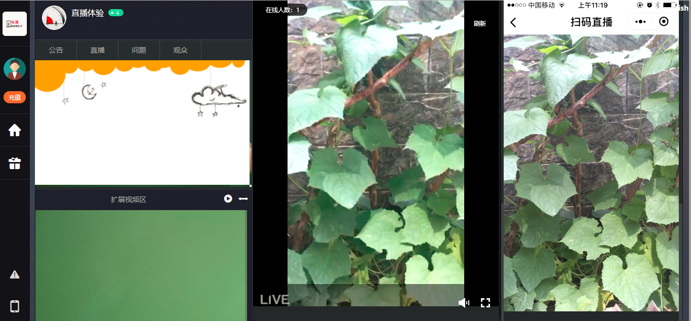 也可以扫码直播,用户也可以扫码观看